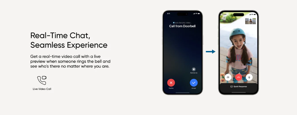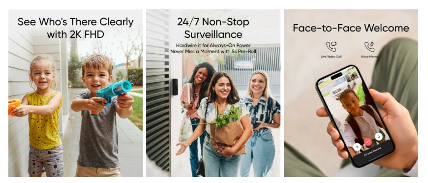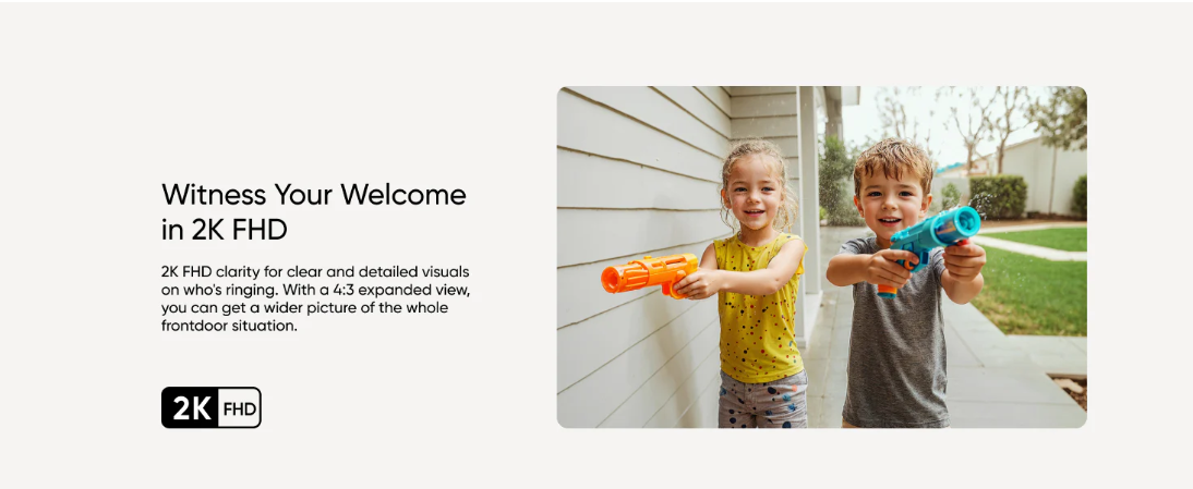 📸 Sharper doorstep footage: 2K video captures details like faces and packages clearly.