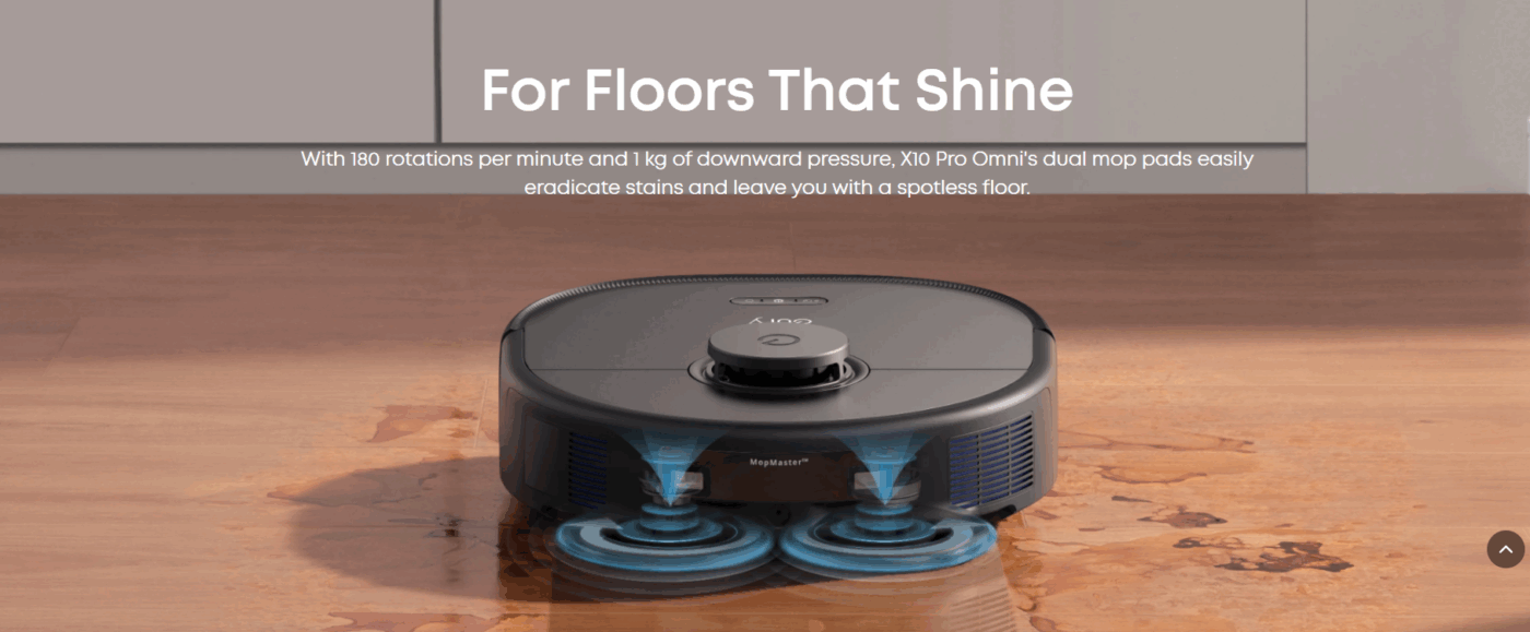 Equipped with an incredible 8,000 Pa suction power, the X10 Pro Omni removes dust, debris, and pet hair from carpets and hard floors with ease. Its MopMaster™ 2.0 system uses dual rotating mop pads that spin at 180 RPM with 1 kg of downward pressure, ensuring deep and even scrubbing to remove stubborn stains. When carpets are detected, the mop pads automatically lift by 12 mm, keeping fabrics dry and spotless.