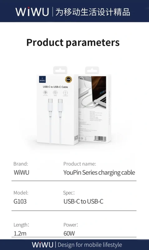 Stay connected and charged wherever you go with the WiWU Type-C to Type-C Cable — strong, smart, and built for modern life.