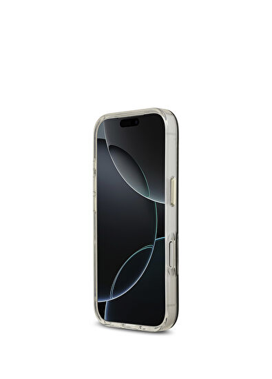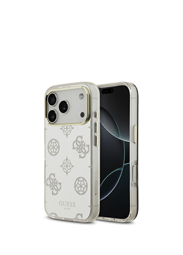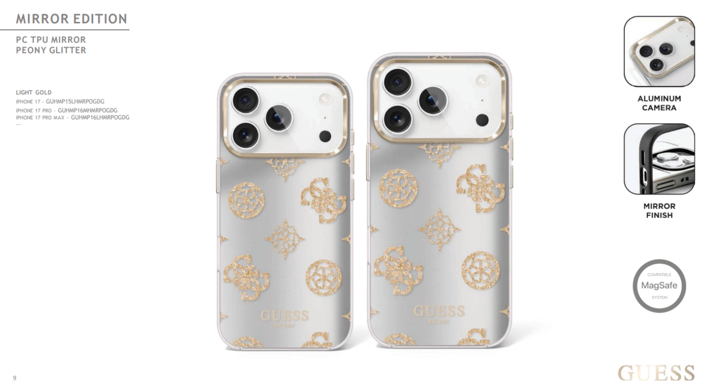 1 × GUESS MagSafe PC TPU Mirror Case with Peony Glitter Logo (Gold)
