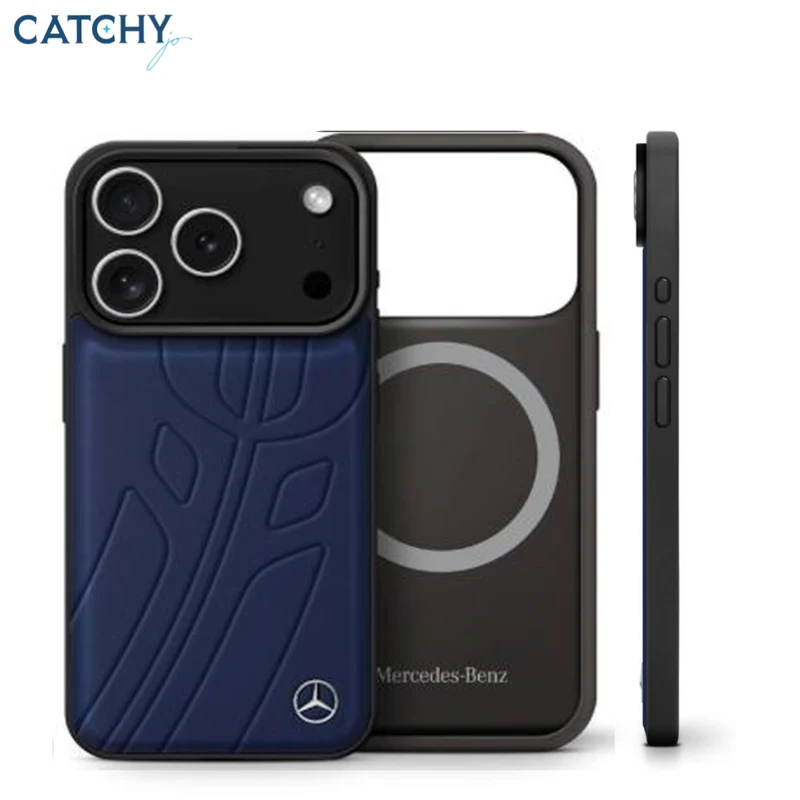 The Mercedes MagSafe Genuine Leather Case – Large Laurel Leaves reflects the brand’s heritage and prestige. The bold laurel leaf pattern symbolizes excellence and victory, while the rich blue leather finish delivers a refined, automotive-inspired aesthetic.