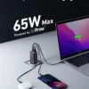Thanks to two USB-C ports, the charger can power multiple devices at once. It intelligently allocates power using Power Delivery 3.0, allowing a laptop and smartphone to charge simultaneously without slowing down. This means less waiting and more productivity, whether at work or on the go.