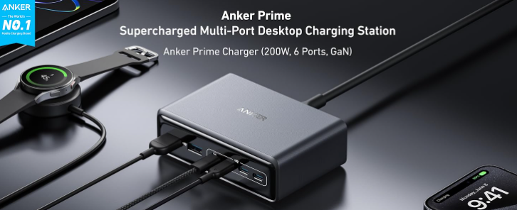 Anker Prime 200W 6-Port GaN Charger – Fast & Smart