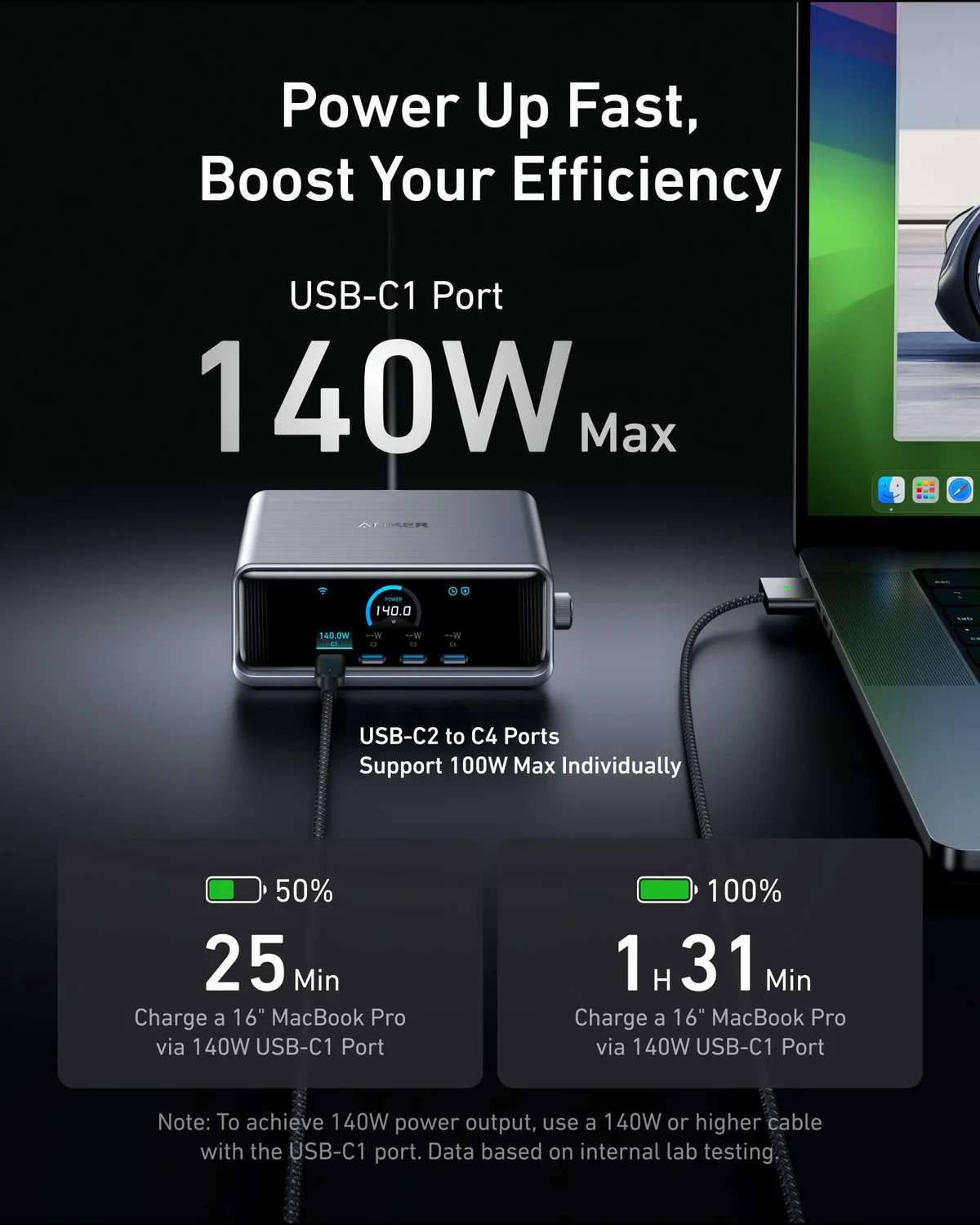 ⚡ High-Wattage Laptop Support: USB-C1’s 140 W max power enables fast laptop charging, ideal for MacBook Pro and other high-power notebooks.