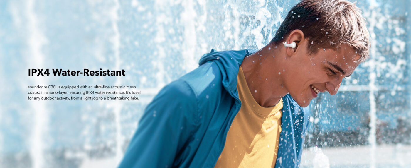 Whether you’re jogging, cycling, or working out, the IPX5 water resistance rating protects your earbuds from sweat and light rain. Their secure clip-on design keeps them comfortably in place, ensuring they stay steady during movement without slipping. These features make the C30i an excellent choice for athletes and active listeners alike.