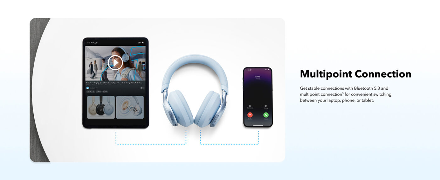 Whether you’re immersing yourself in music, taking calls, or focusing on work, the Anker Soundcore Space One Headphones provide unmatched sound quality, comfort, and convenience. Experience true wireless freedom, superior noise cancellation, and professional-grade audio all in one stylish package.