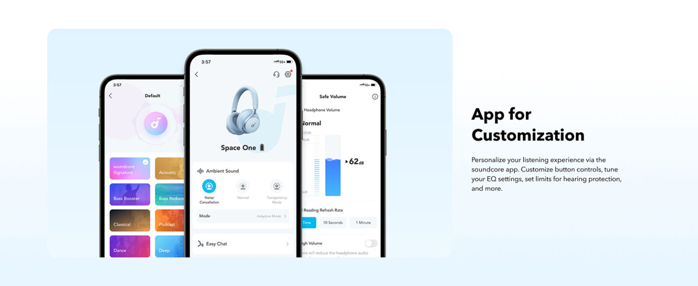Whether listening to music, taking calls, or gaming, the Anker Soundcore Space One Headphones give you clear, immersive sound. They combine noise cancellation, comfort, and long-lasting battery for a top-quality experience.