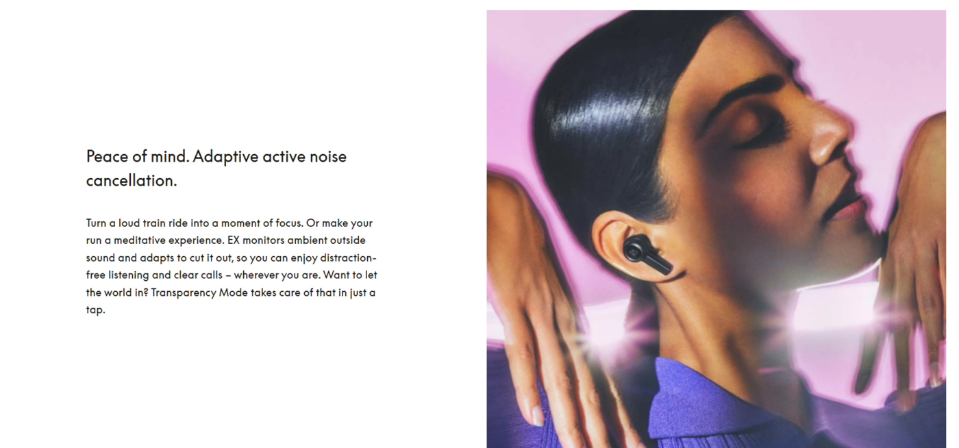 Experience exceptional sound quality with the Bang & Olufsen Beoplay EX, engineered for audiophiles and daily commuters alike. With Adaptive Active Noise Cancellation, environmental sounds are dynamically filtered, allowing you to focus on your music or calls while remaining aware of your surroundings when needed via the Transparency Mode.