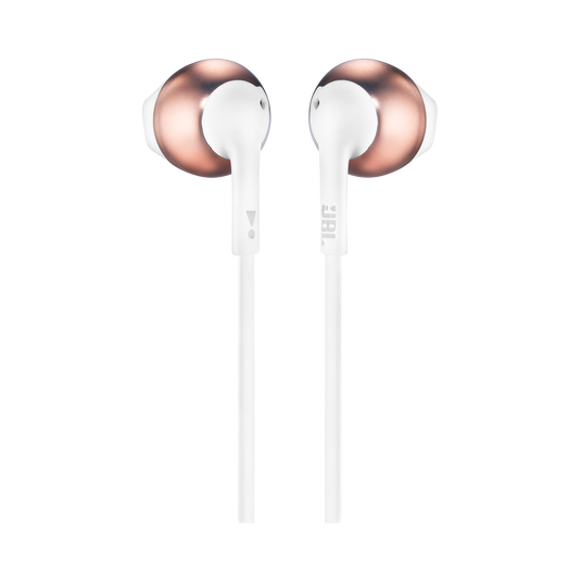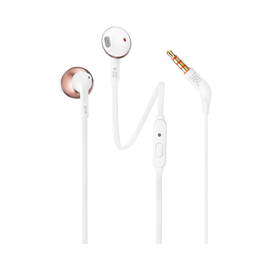 JBL Tune 205 wired earbuds deliver JBL Pure Bass sound, comfortable semi-in-ear fit, tangle-free cable, and in-line mic for clear calls and deep, rich sound.
