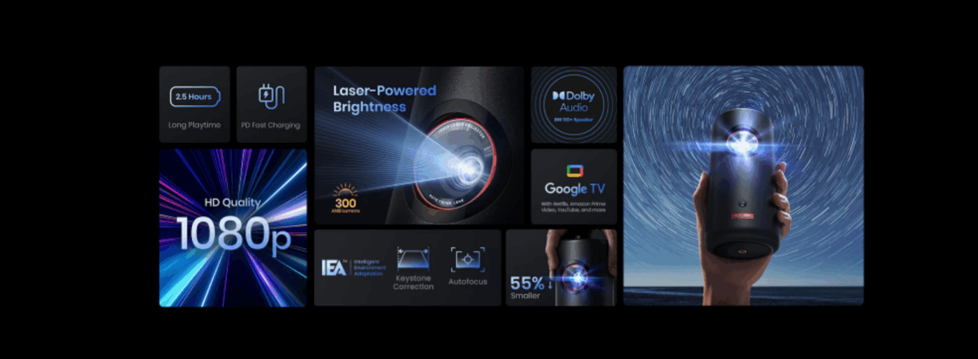 Despite its powerful performance, the Nebula Capsule 3 remains ultra-portable. Weighing less than 1 kg, it’s easy to carry anywhere — from your living room to outdoor movie nights.