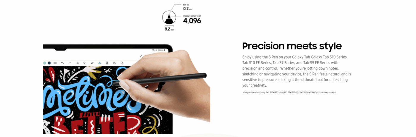 Whether you’re a student, designer, or professional, the Galaxy Tab S9 / S9 FE / S9 Ultra S Pen makes every task faster, smarter, and more creative.