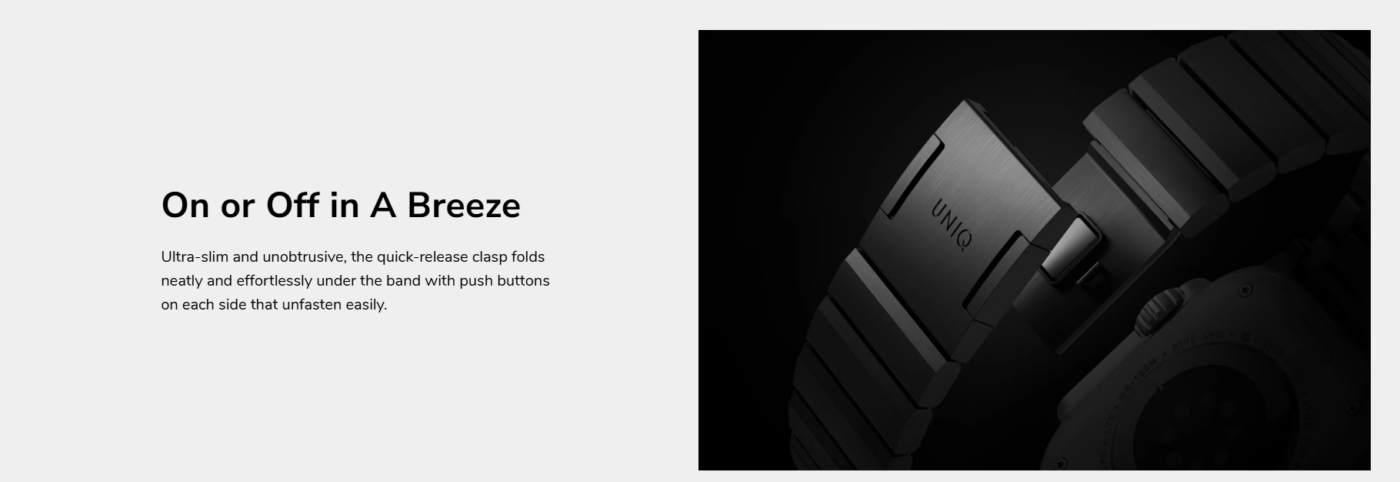 The UNIQ Strova Mag Apple Watch Strap is designed with a clean, minimalist aesthetic that pairs perfectly with the Apple Watch. Its refined look suits both professional environments and casual everyday wear.