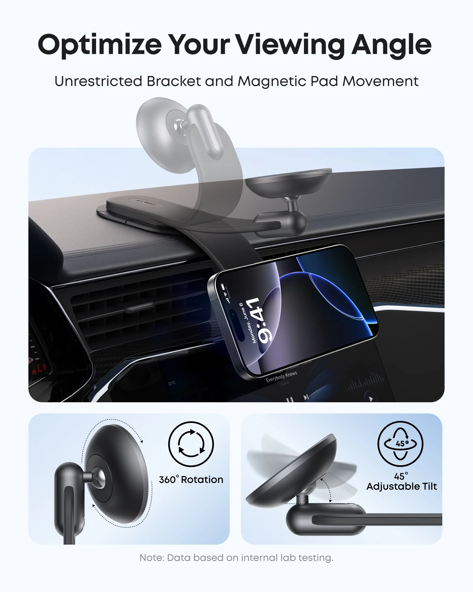 With 360° rotation, you can adjust your smartphone to any angle — portrait, landscape, or somewhere in between — to get the perfect viewing position for GPS navigation, video calls, music control, or hands-free chatting.