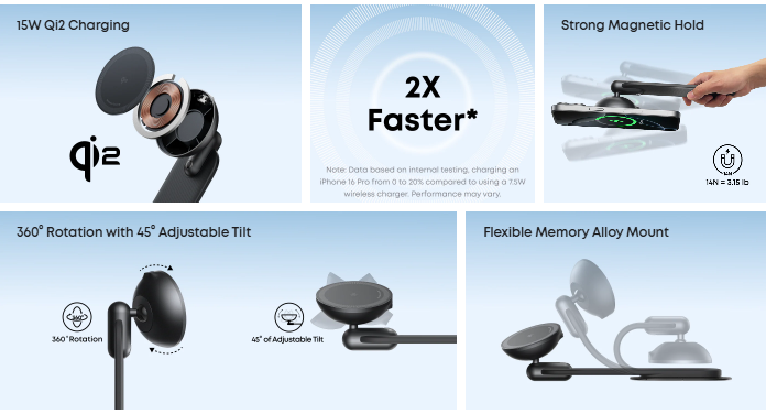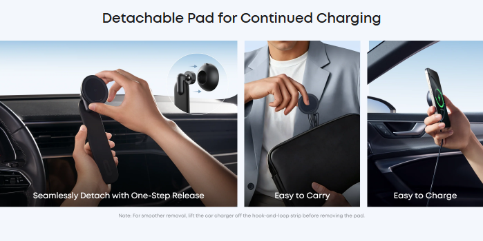 The Anker Car Alloy Bracket is engineered to keep your phone firmly in place while you’re driving — even on bumpy roads. Its strong magnets provide a reliable grip that accommodates MagSafe-compatible devices and other smartphones with magnetic plates or cases.