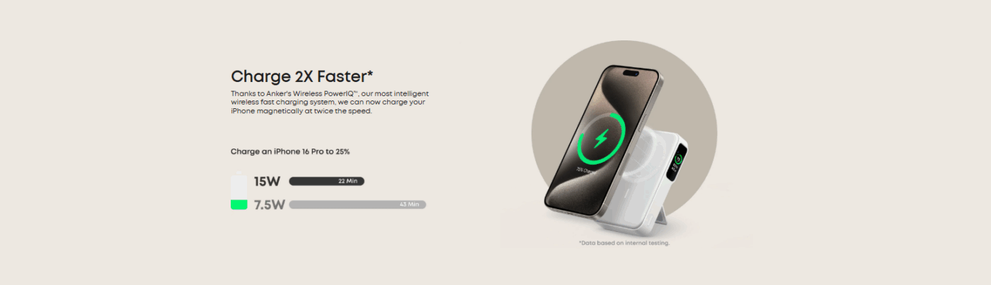 Every detail of the MagGo Power Bank reflects Anker’s commitment to quality. The smooth edges, minimalist finish, and subtle branding create an elegant accessory that looks great alongside any iPhone. Moreover, its durable construction ensures reliable performance for years to come.