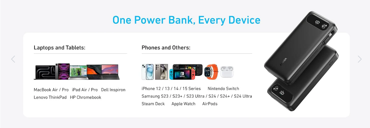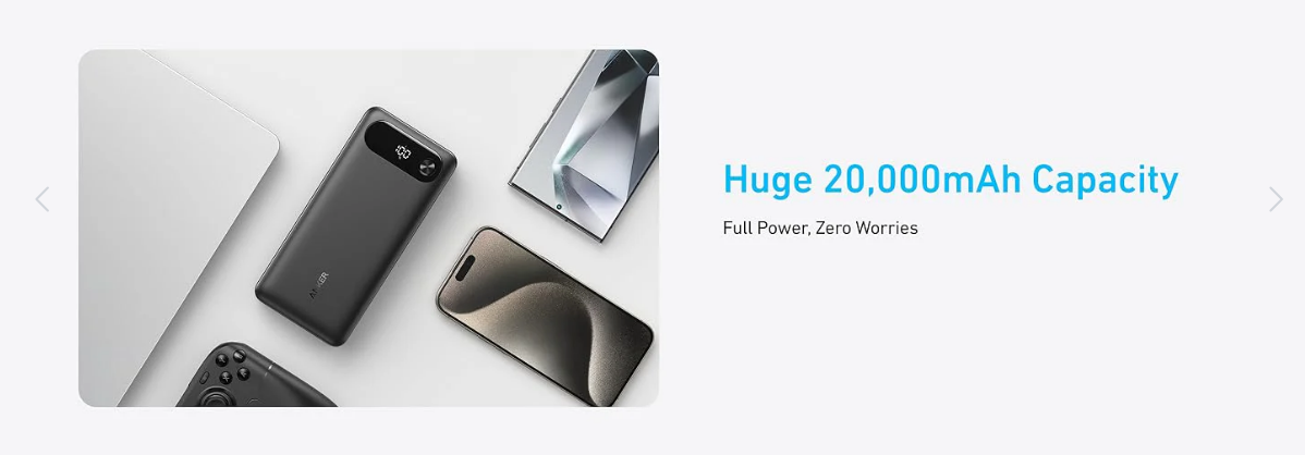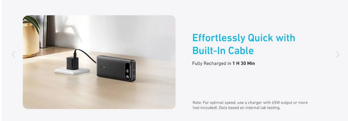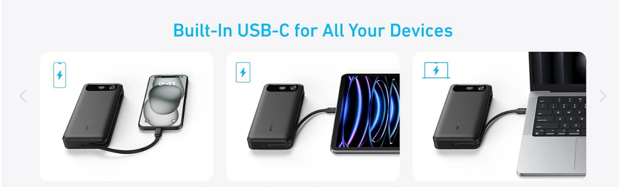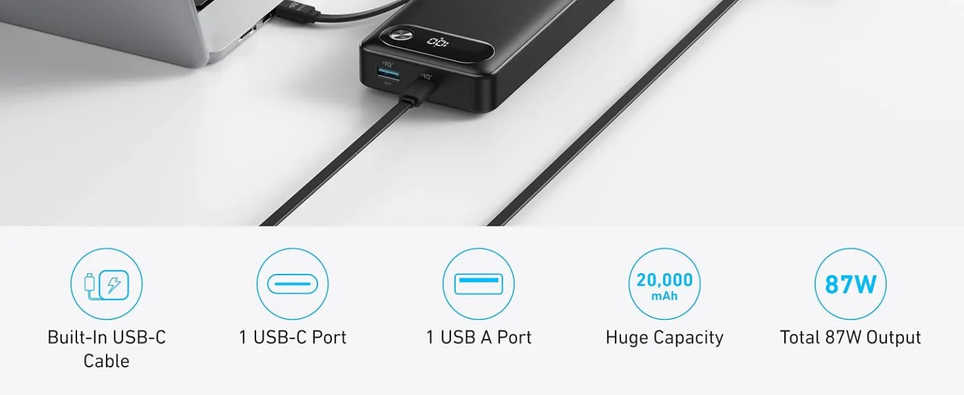 | Model | Anker Power Bank 20K 87W with Built-In USB-C Cable |