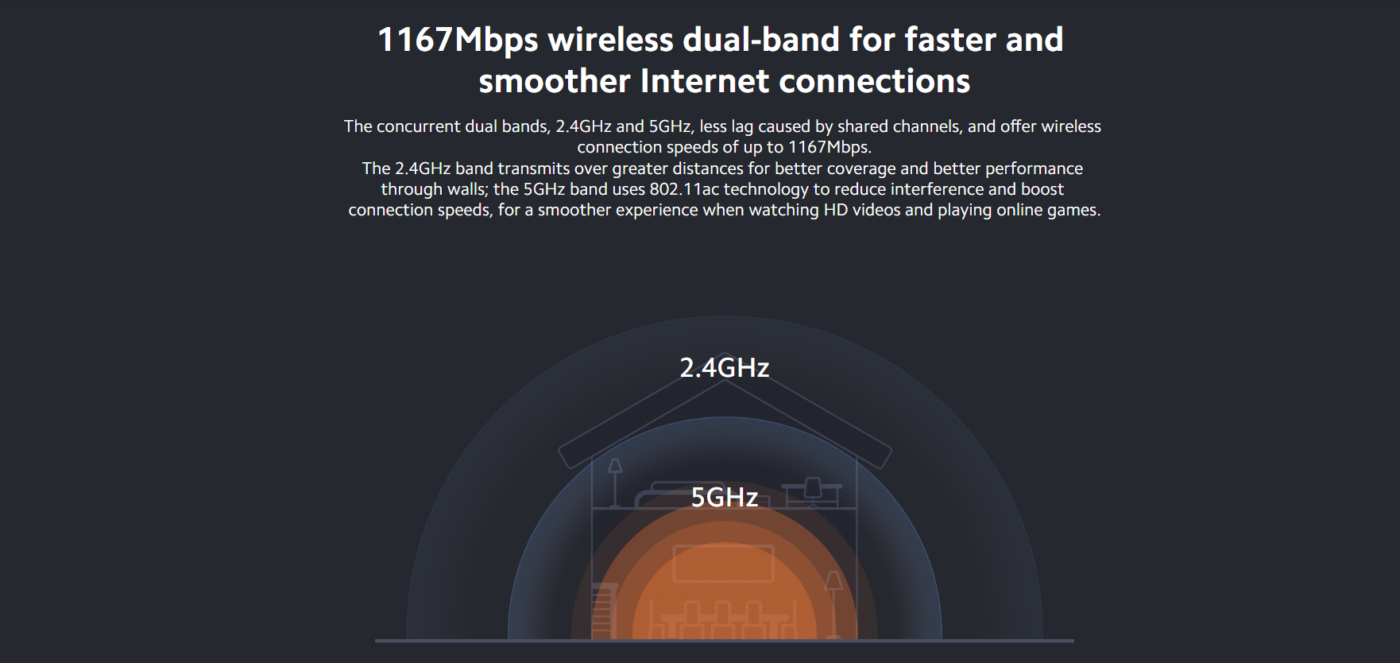 📡 Dual-Band Wi-Fi up to 1167Mbps