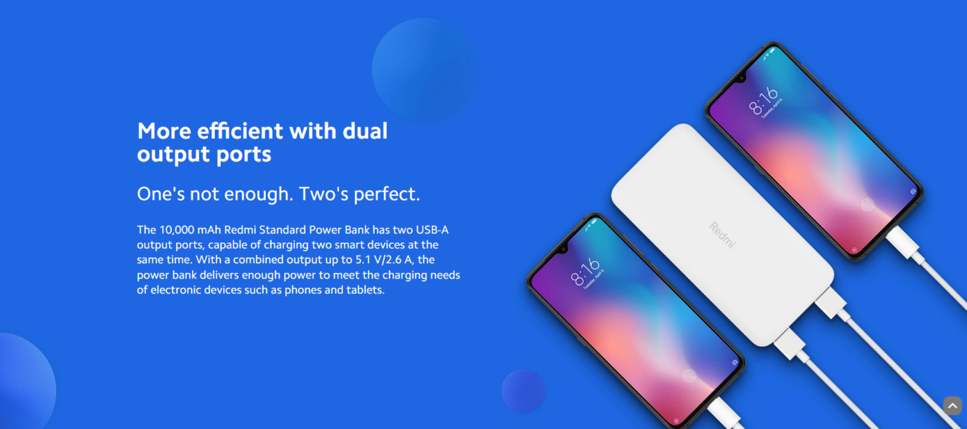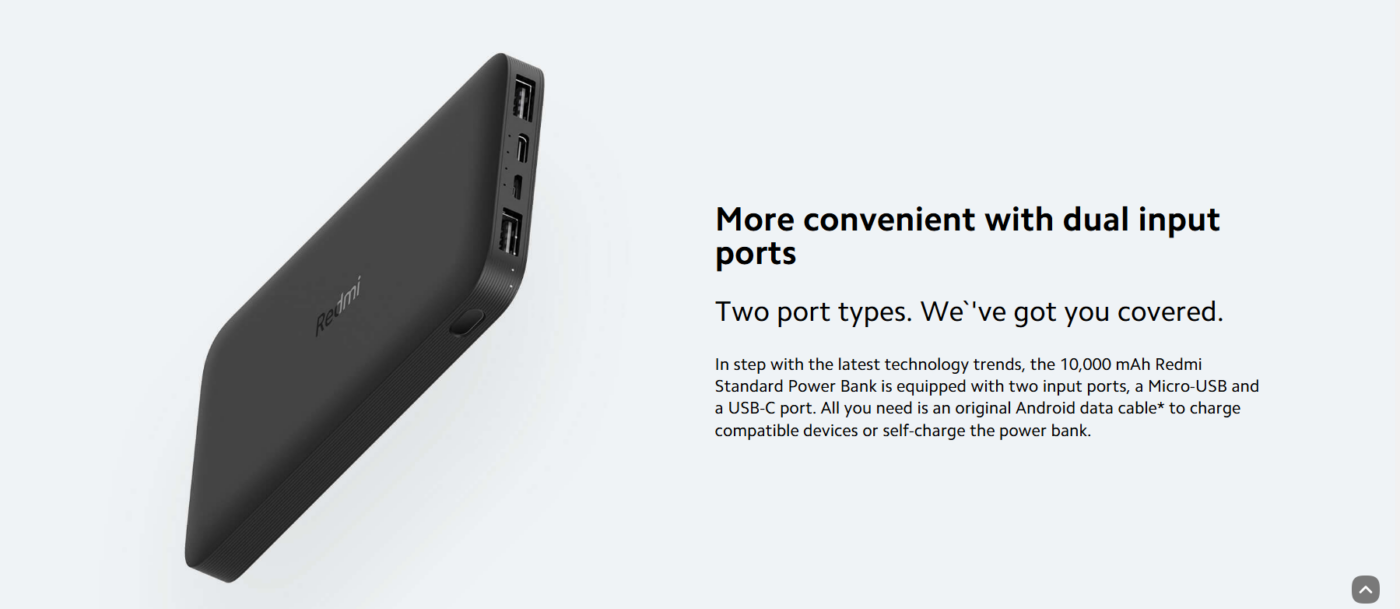 With its combination of simple design, reliable battery capacity, and dual-device charging, the Redmi 10000mAh Power Bank is an affordable and practical portable charging solution.