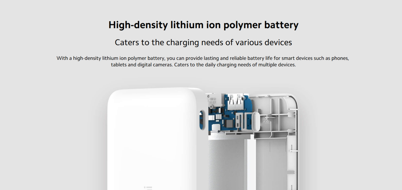 The Redmi Power Bank also includes multiple safety protections, such as over-charge protection, short-circuit protection, and overload protection, ensuring safe operation while charging devices.