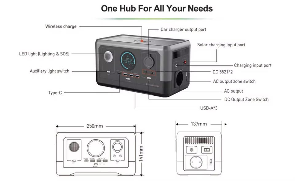 It also supports solar charging input, making it a practical choice for off-grid use like camping, road trips, or emergency situations.