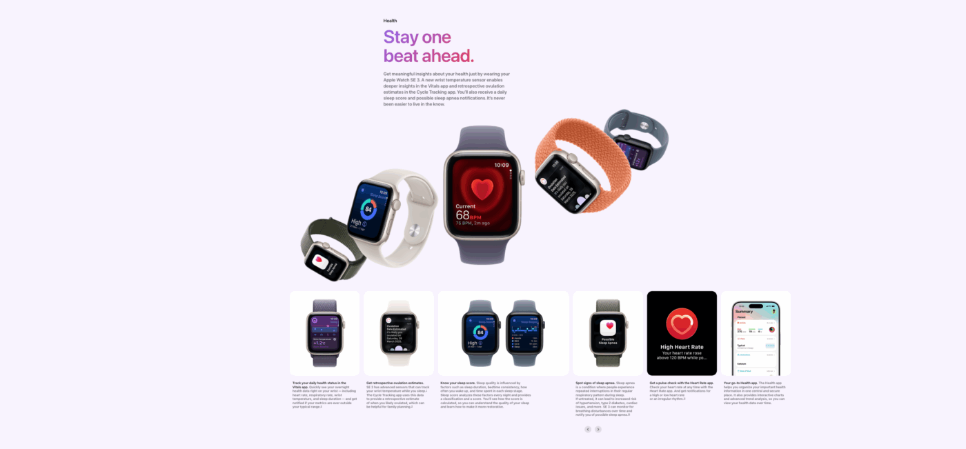 Meet the Apple Watch SE 3, Apple’s best-value smartwatch for users who want the perfect blend of performance, health insights, and everyday convenience. With the same S9 SiP processor found in higher-end models, it’s faster, more responsive, and more power-efficient than ever before.