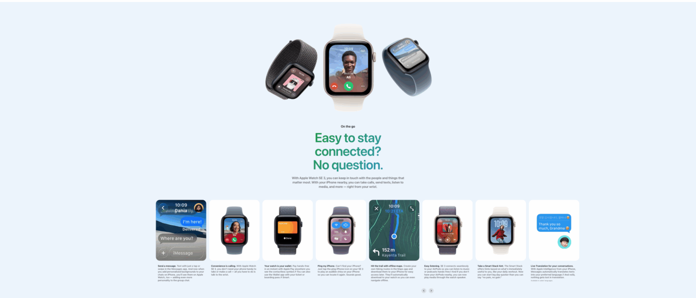 Smart Connectivity: Calls, messages, Apple Pay, and notifications on your wrist.
