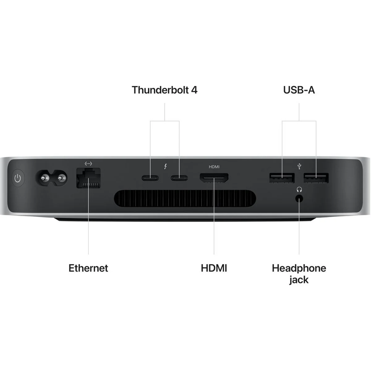 Despite its small size, the Mac Mini offers excellent connectivity options including Thunderbolt 4 ports, HDMI, USB-A, and Ethernet, allowing you to connect multiple displays and accessories with ease.