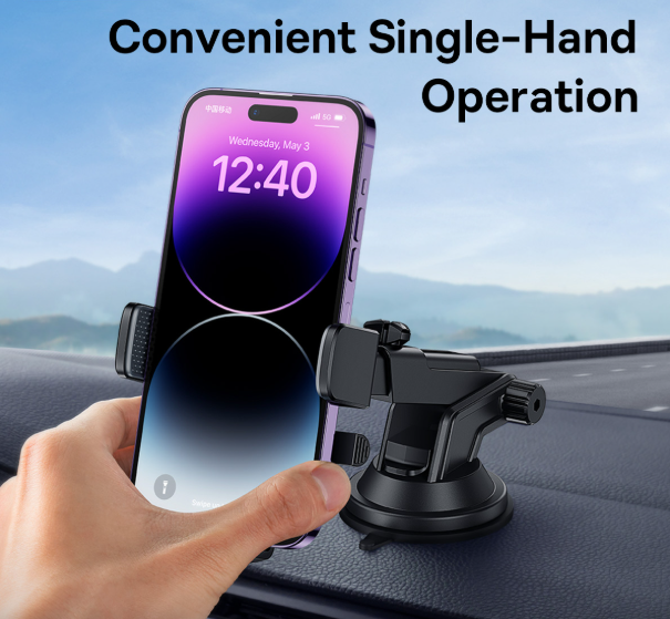 The intelligent spring-loaded clamp allows for single-handed mounting and removal. Just place your phone inside, and the holder locks it securely in place. Removing your phone is equally simple—press the release button, and you’re ready to go. This feature makes it ideal for drivers who need quick access to their devices without distractions.