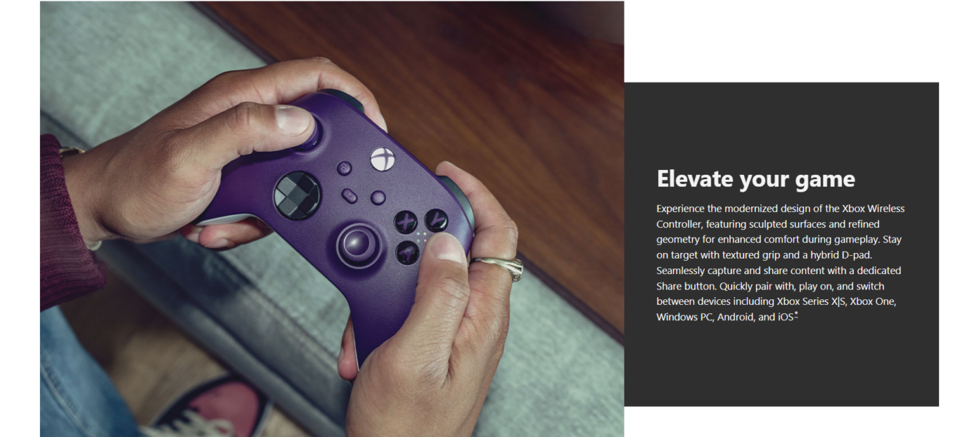 The contoured design, textured grip on the triggers and bumpers, and refined button layout give you enhanced control — especially during long gaming sessions. The hybrid D-pad improves directional precision for combos and quick moves, while responsive thumbsticks help you make exact adjustments in fast-paced gameplay.