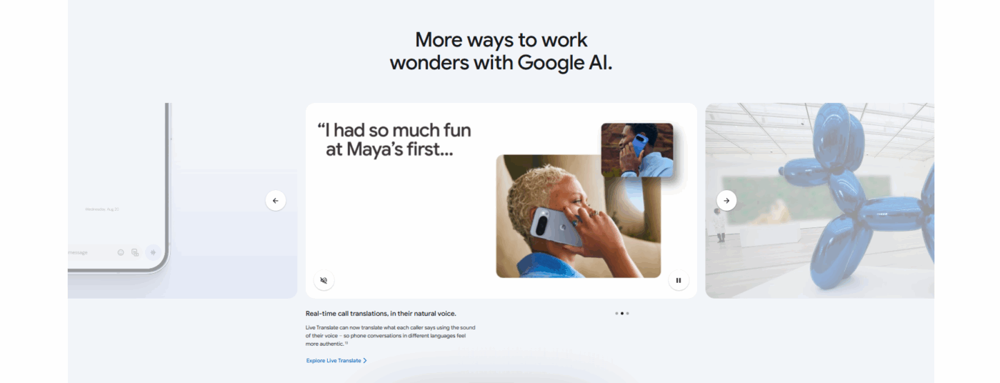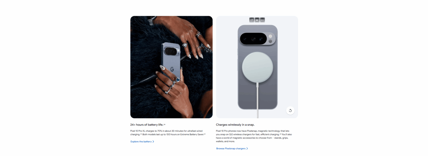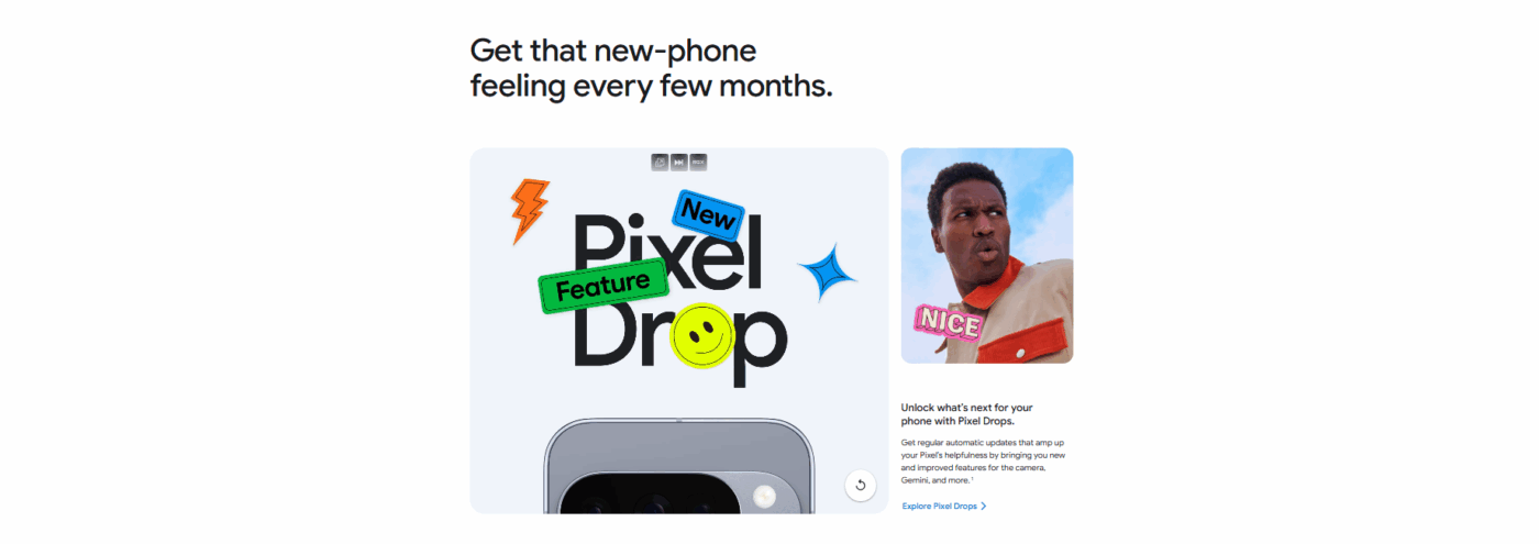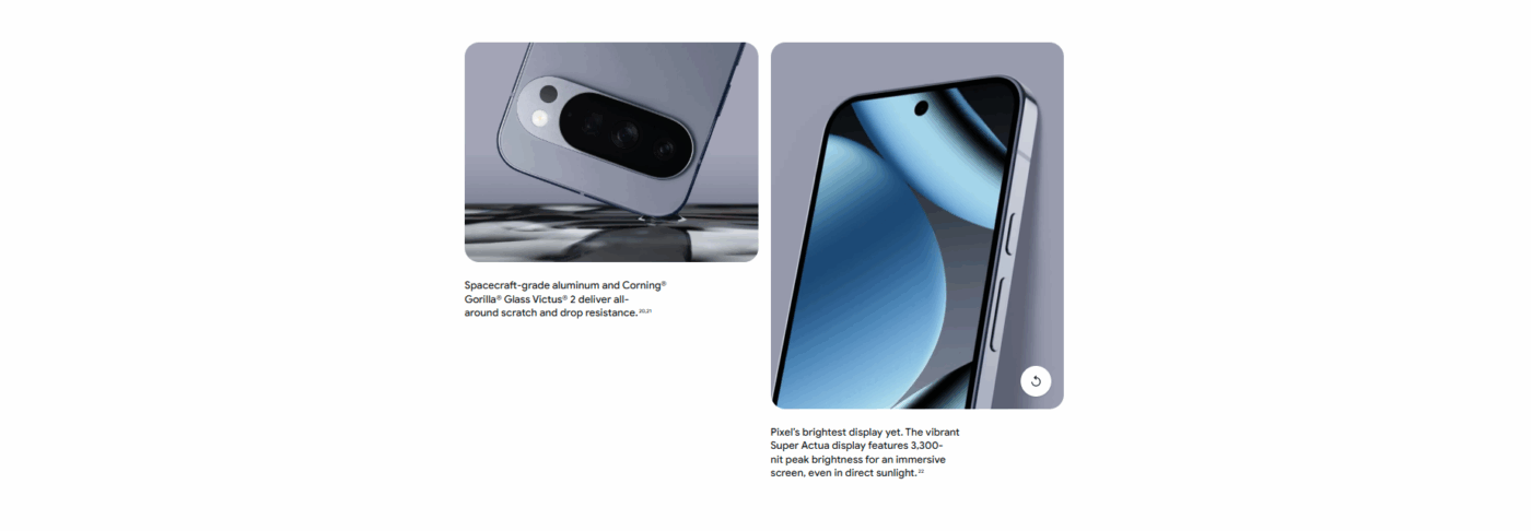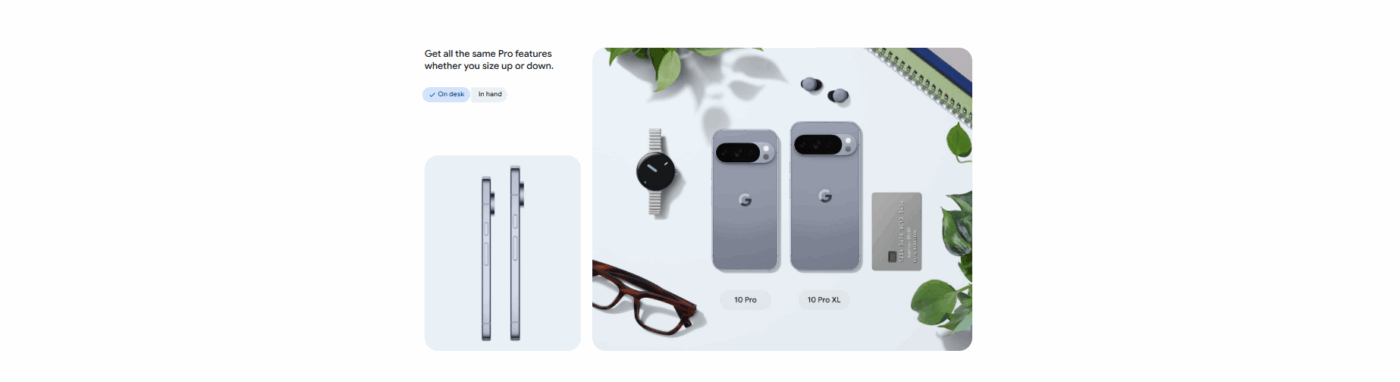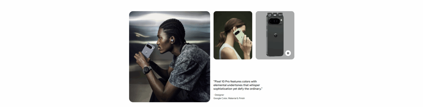 The design continues Google’s signature camera bar, now sleeker and lighter, with a matte texture for a comfortable grip and refined aesthetics.