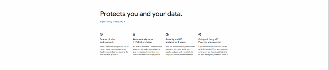 Pro-level photography with three powerful lenses and Google’s imaging software.