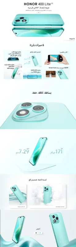 The Honor 400 Lite is made for people who want flagship-like photography and a smooth display without the full price tag. It packs a powerful 108 MP main camera, fast refresh rate, and modern battery & charging — wrapped in a slim, stylish body.