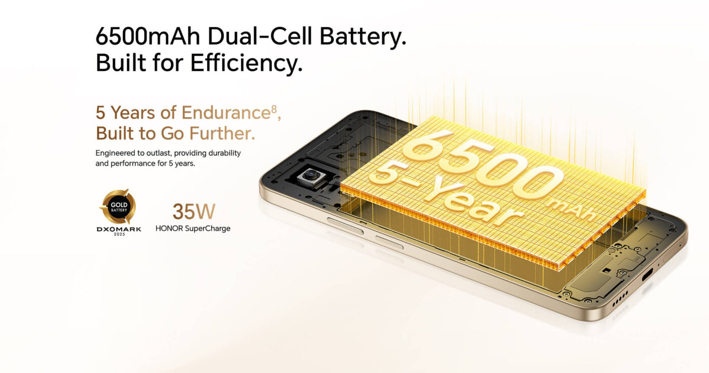 The phone includes a large 6,500 mAh (typical) dual-cell battery—built to deliver long usage even with moderate to heavy use.