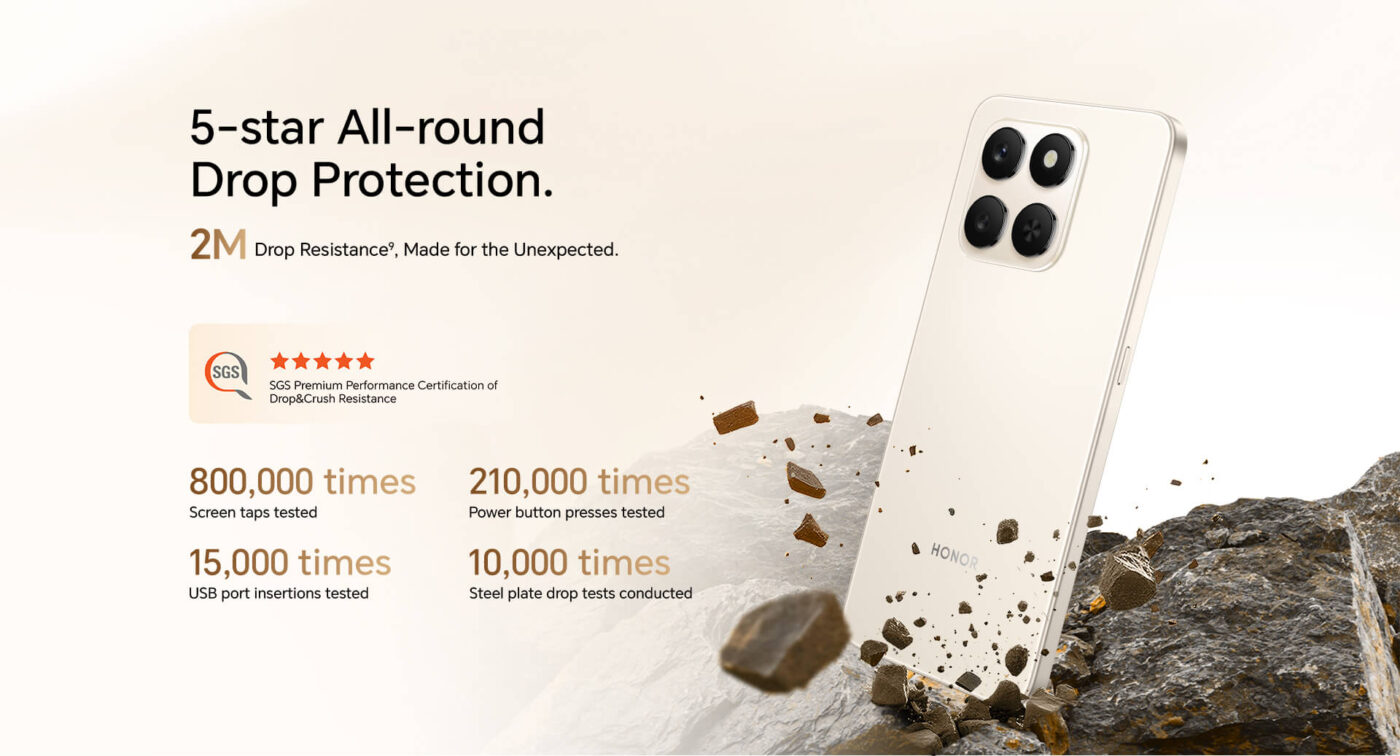 The device also holds a drop resistance certification (SGS 5-star Premium Drop/Crush resistance), enhancing its durability for rough handling.