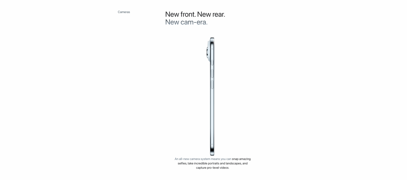 - 48 MP Fusion main + 12 MP telephoto rear cameras; 18 MP Center Stage front camera