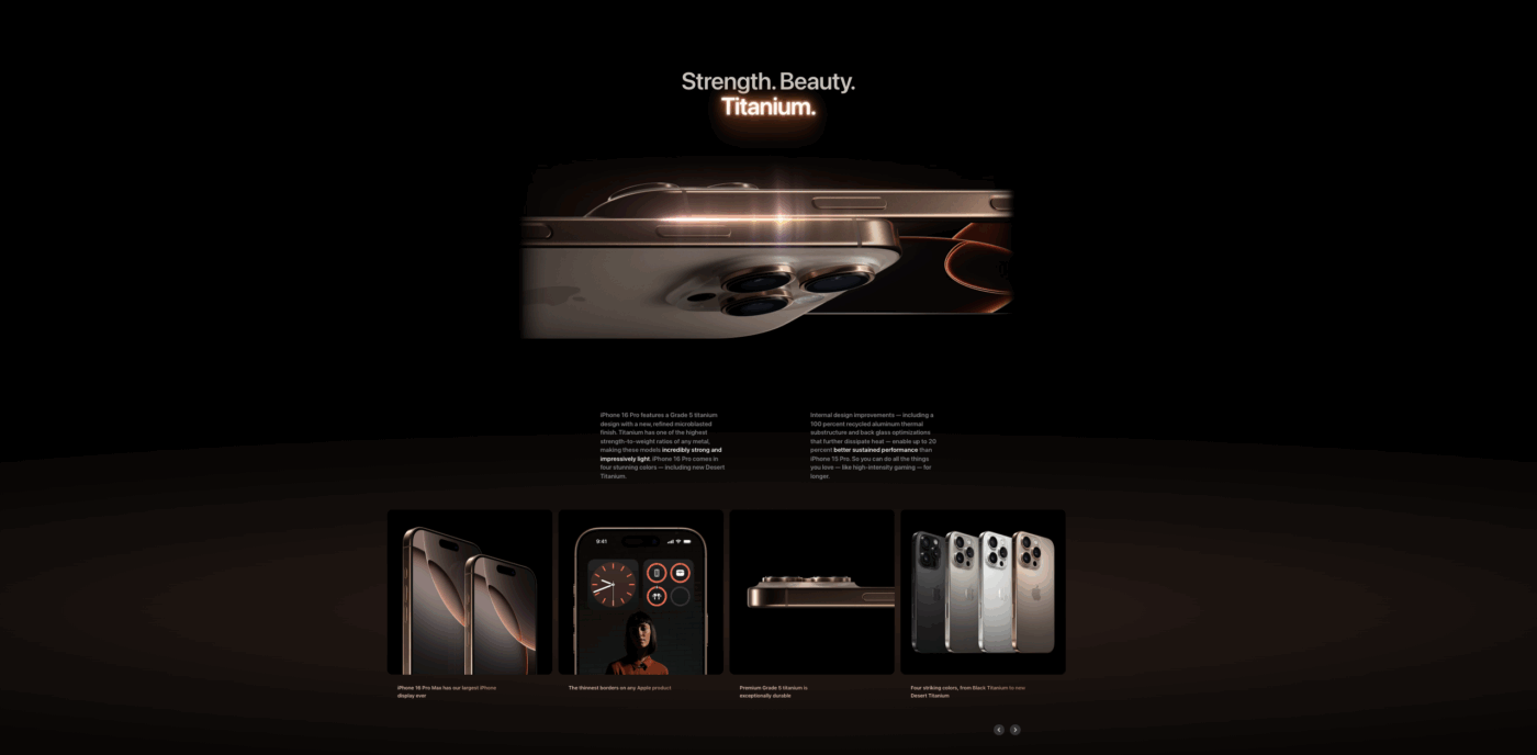Built from Grade 5 titanium, the iPhone 16 Pro combines strength and lightweight elegance. It’s available in sophisticated finishes like Natural Titanium, Desert Titanium, White Titanium, and Black Titanium, perfectly balancing durability and style.