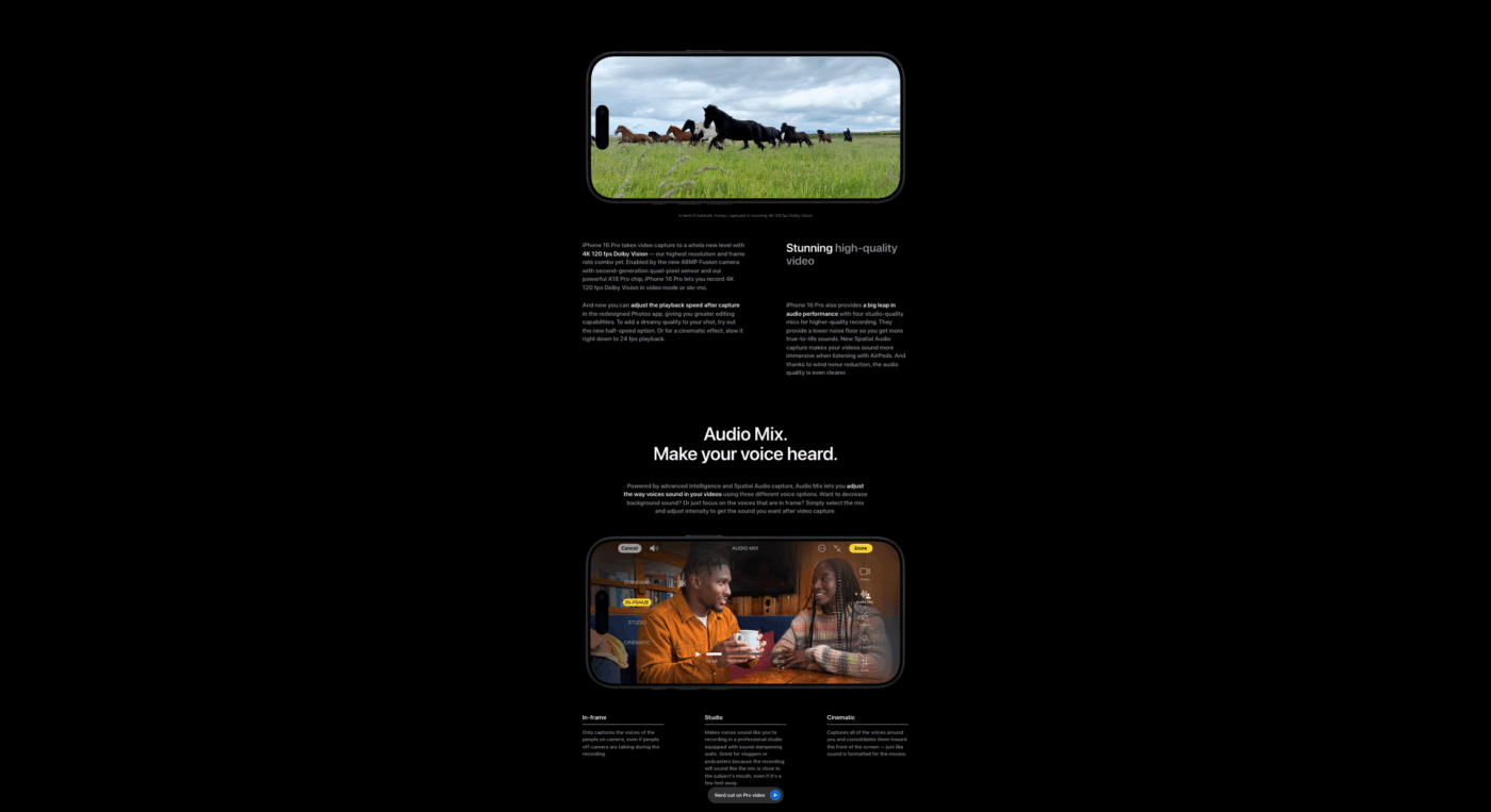 | Video Recording | 4K up to 60 fps, ProRes, Cinematic Mode |