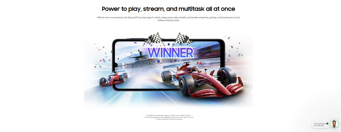 Under the hood, Galaxy A07 is powered by the MediaTek Helio G99 octa-core chipset, delivering reliable performance for your daily apps, photo browsing, videos, and casual gameplay. Pair this with up to 8 GB RAM and generous internal storage options, plus support for up to 2 TB microSD expansion, and you’re set for multitasking and storage-heavy needs.