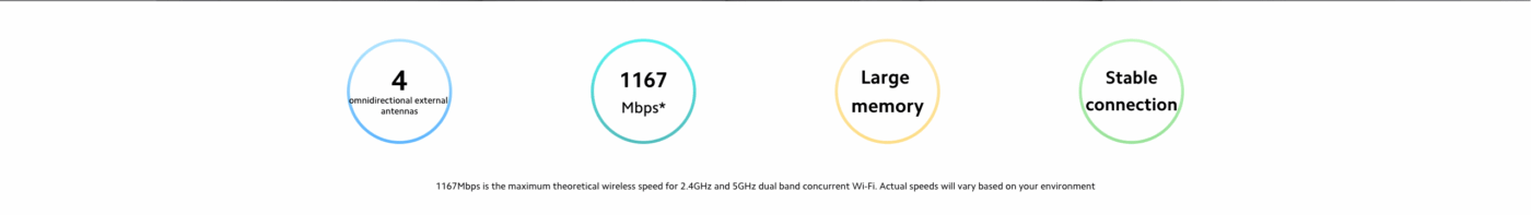 | Speed | Up to 1167 Mbps (867 + 300 Mbps) |