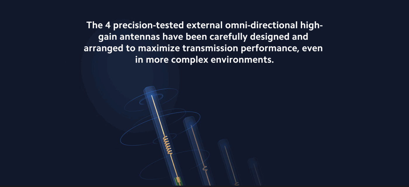 | Antennas | 4 High-Gain External Antennas |