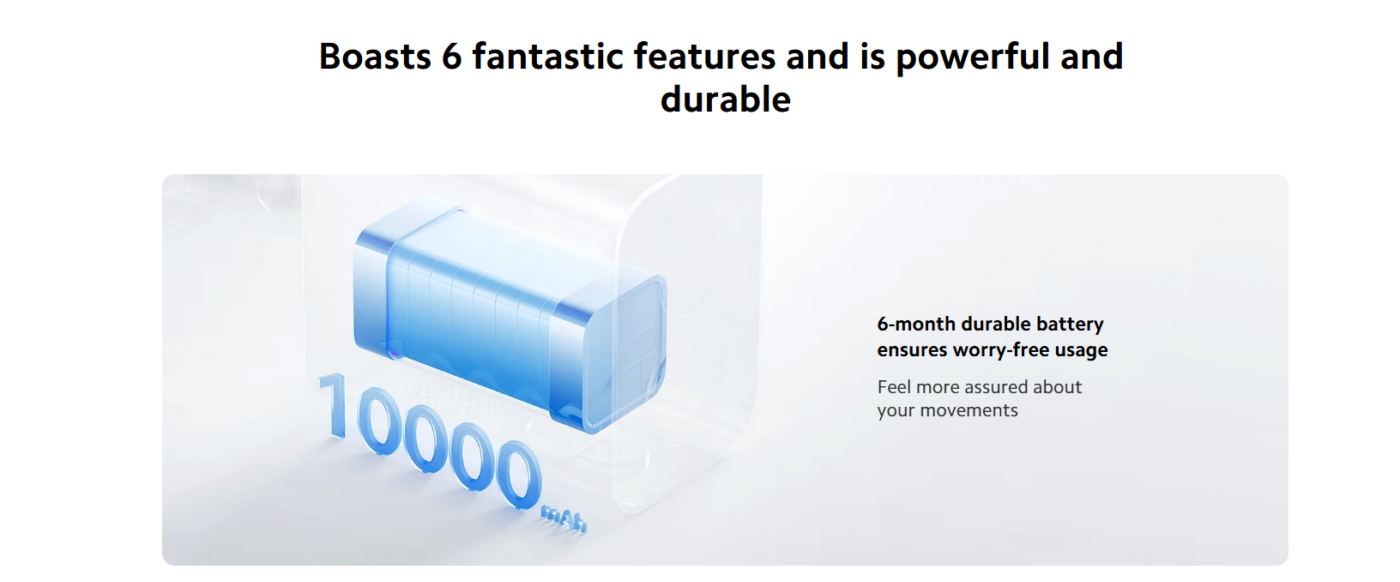 Long-lasting 10,000mAh battery reduces charging frequency.