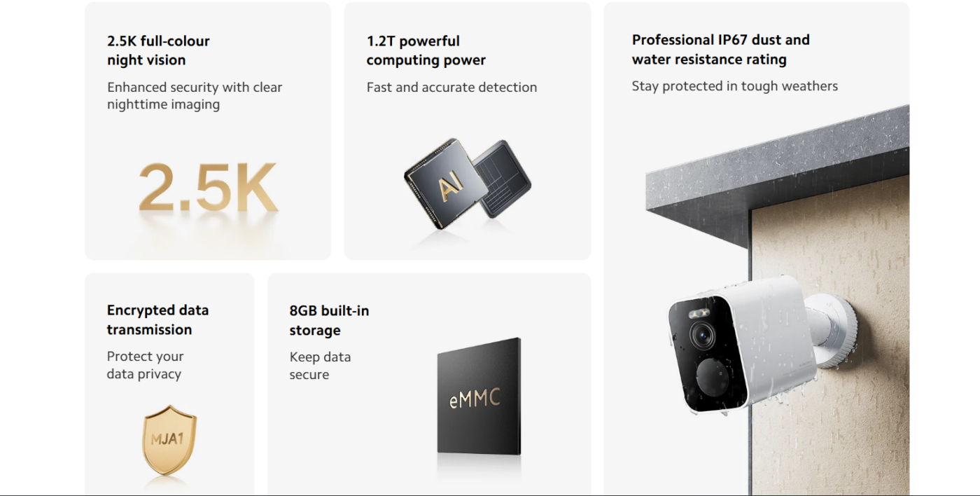 The Xiaomi Outdoor Camera BW500 is designed to provide reliable home security with ultra-clear video quality and intelligent monitoring features. With 2.5K resolution (2560 × 1440), the camera captures sharp and detailed footage so you can clearly identify people, vehicles, and activities around your property.