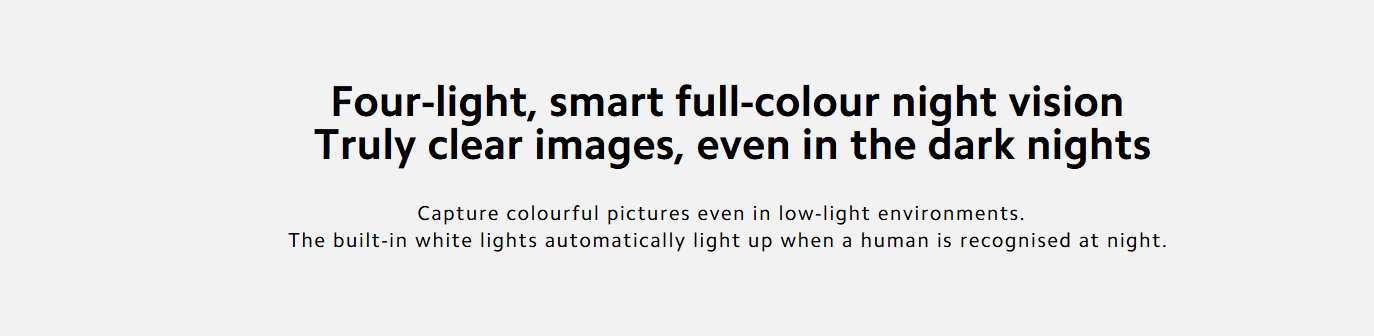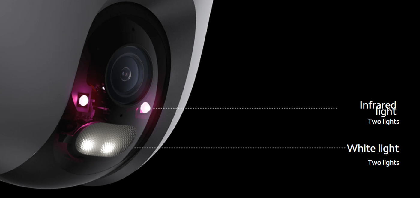 With smart full-color night vision, the camera uses infrared lights and white LEDs to capture clear images even in low-light environments. When motion or a person is detected, the built-in lights can activate automatically to improve visibility and deter intruders.