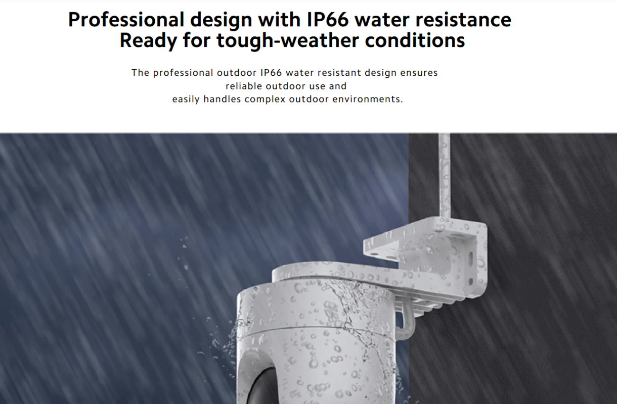 Designed for outdoor durability, the camera features IP66 dust and water resistance, allowing it to operate reliably in rain, dust, and harsh weather conditions.