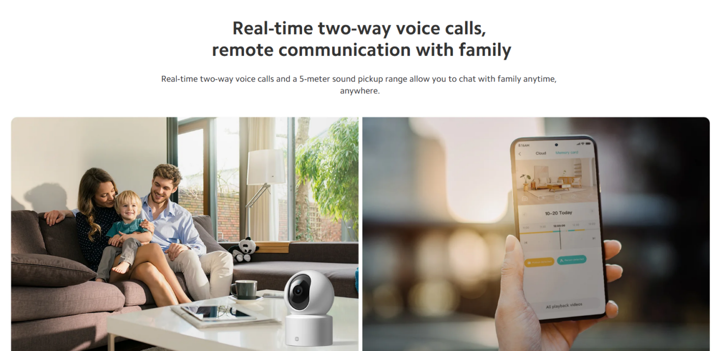 Built-in microphone and speaker allow real-time voice communication — talk with family members, pets, or visitors from anywhere.
