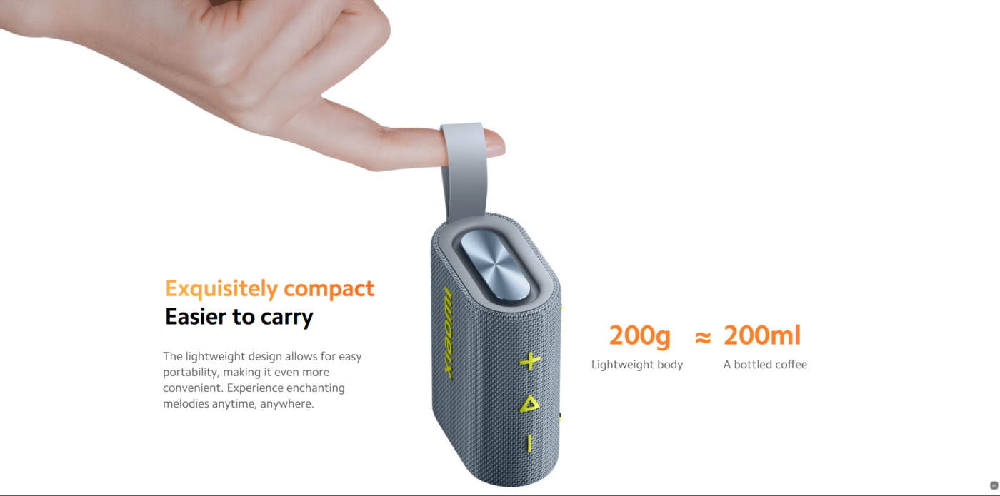 Despite its small size, the speaker is engineered to provide an immersive listening experience whether you’re at home, outdoors, or traveling. The lightweight 200g design makes it easy to carry in your bag or even your hand, making it an ideal companion for daily use, trips, or outdoor adventures.