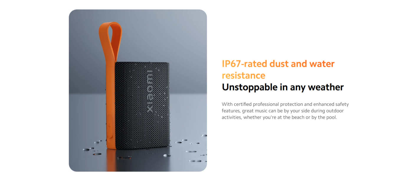 Built for durability, the speaker features an IP67 rating, making it resistant to dust and water. This means you can confidently use it at the beach, poolside, or during outdoor activities without worrying about splashes or dust damage.