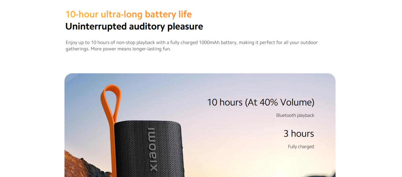 The 1000mAh battery provides up to 10 hours of playback, ensuring long-lasting music enjoyment on a single charge. It recharges via USB-C in approximately 3 hours, making it convenient for everyday use.