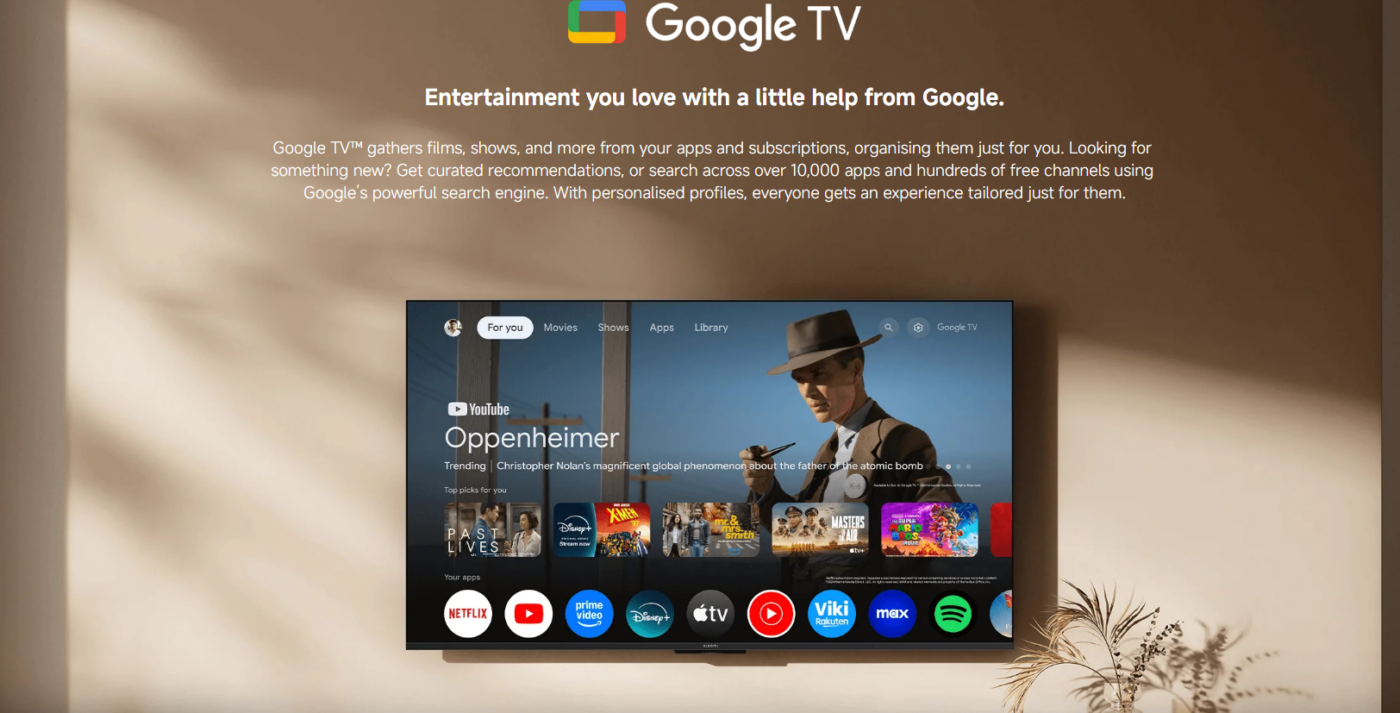 | App Support | Netflix, YouTube, Prime Video, Disney+, more |