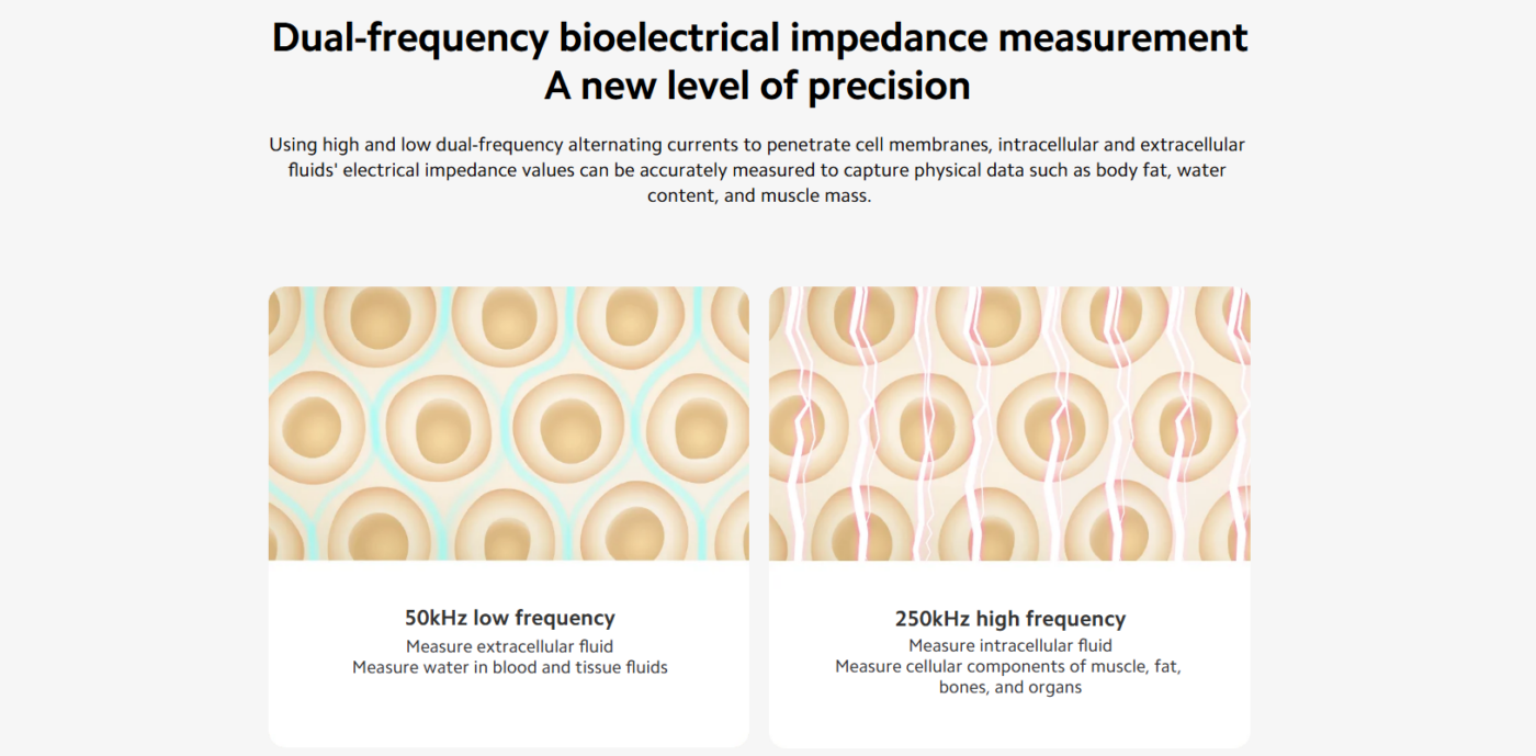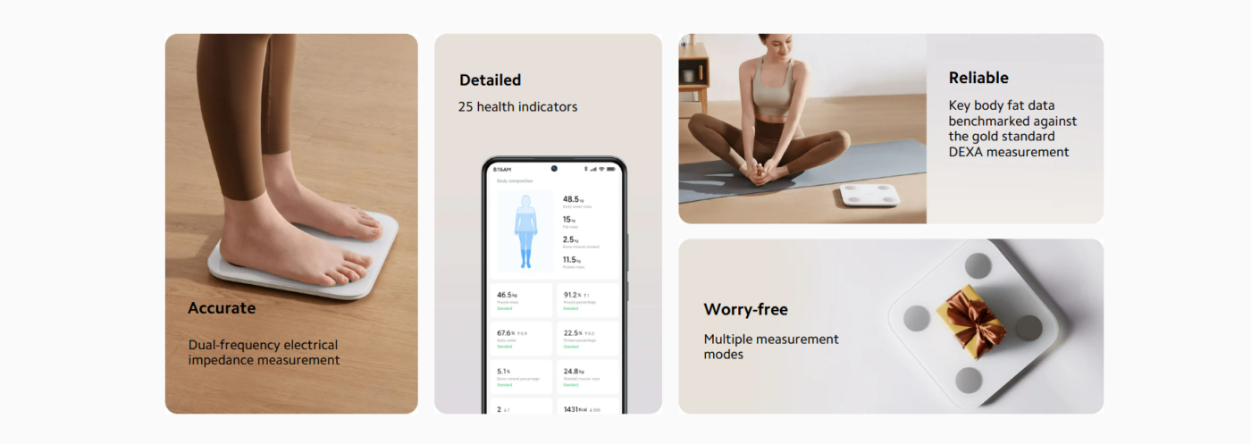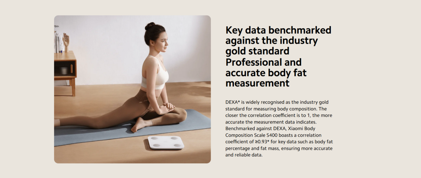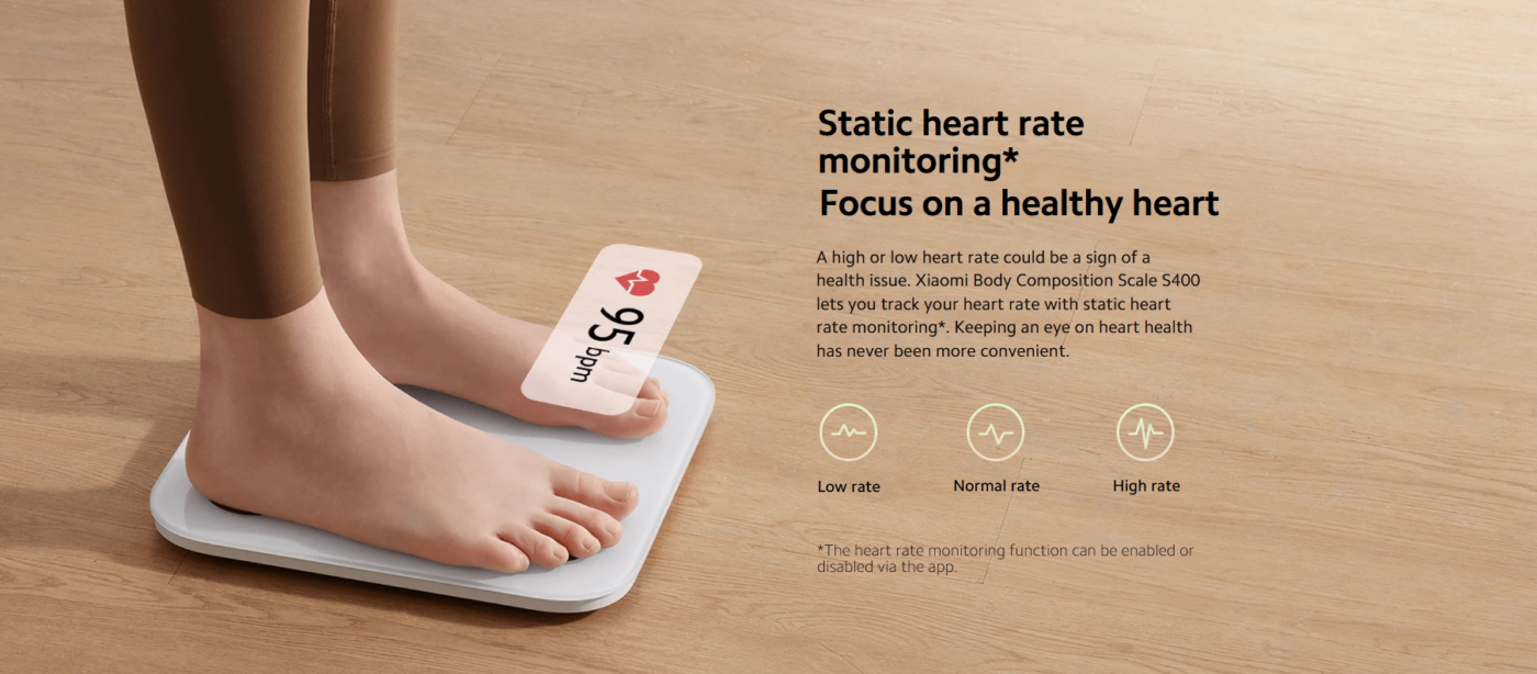 The Xiaomi Body Composition Scale S400 is designed to provide more than just basic weight measurements. With advanced BIA (Bioelectrical Impedance Analysis) technology, the scale sends a safe electrical signal through the body to analyze body composition and provide deeper health insights.